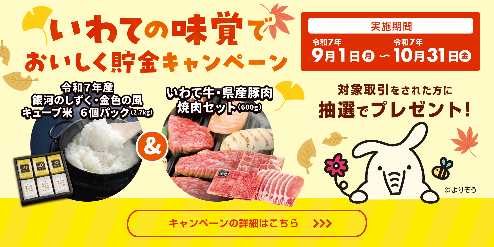- 2025/09/01 信用事業・共済事業 いわての味覚でおいしく貯金キャンペーン実施中!