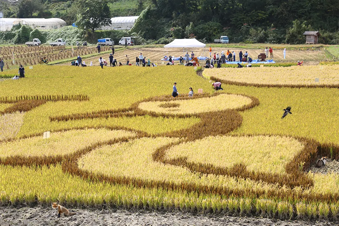 一方井地区は、毎年、地元小学生の児童が絵柄を考えています。浮島地区は、童話をテーマに描かれ、一般の方も田植えや稲刈りに参加しています。