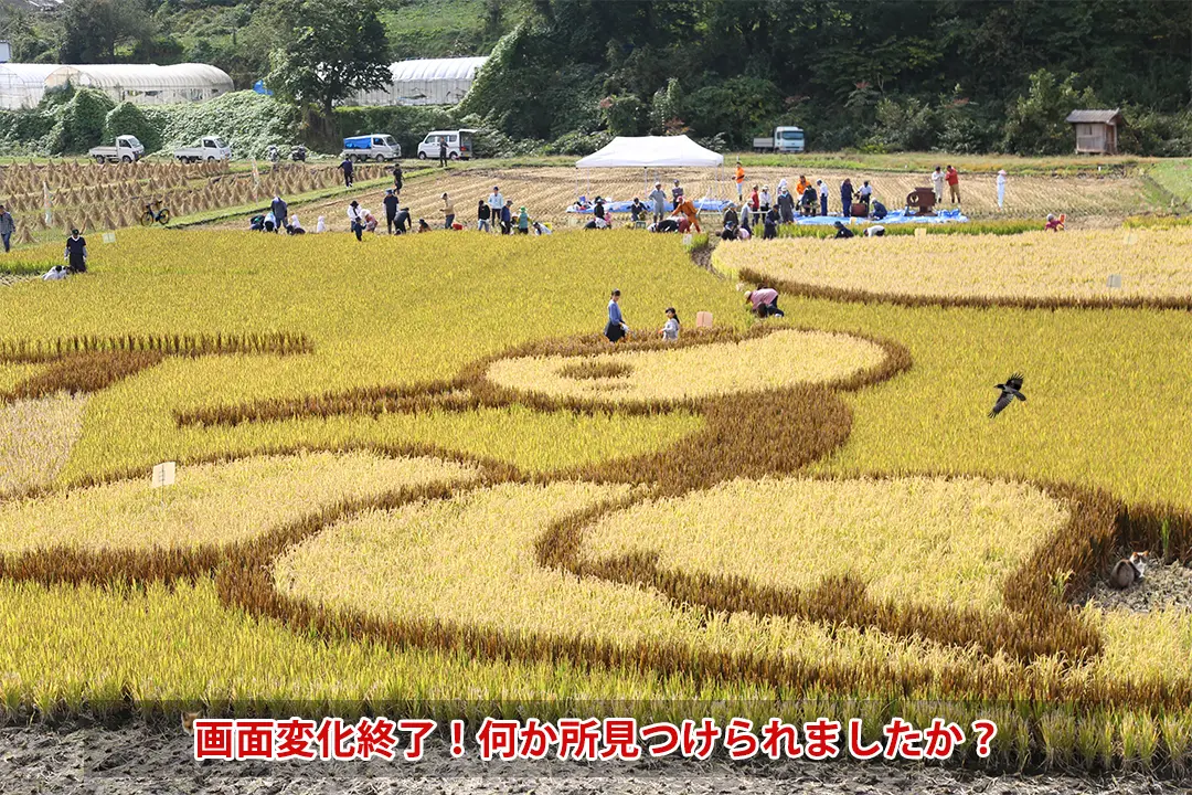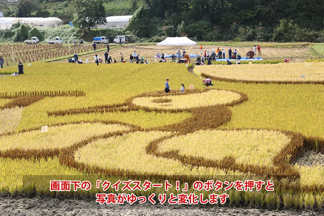 上の写真をクリックすると、クイズ画面が表示されます。 ボタンを押してから時間に経つにつれて徐々に写真が変化! 「変化終了!」の表示が出るまでに、いったい何か所が変化したでしょうか?