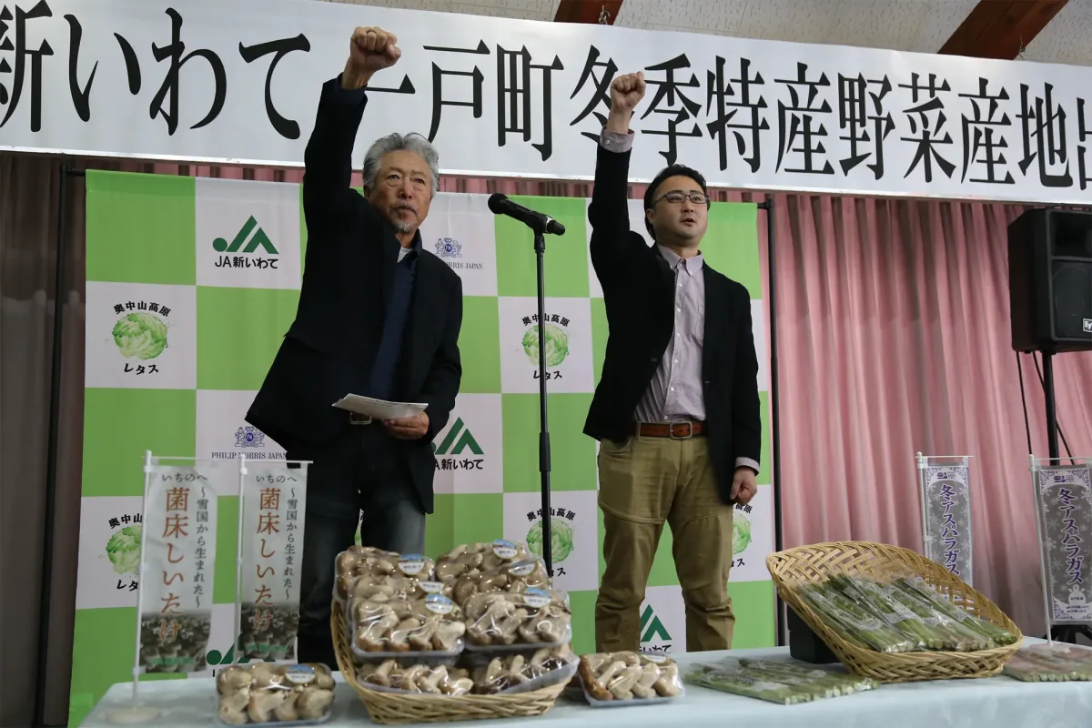 JA新いわて二戸地域野菜生産部会奥中山支部(促成アスパラガス専門部・菌床しいたけ専門部)とJAは12月11日、一戸町のホテル奥中山高原でJA新いわて・一戸町冬季特産野菜「産地出陣式」を開いた。生産者や関係者約60人が集まり、出荷最盛期を迎える冬アスパラガスと菌床シイタケの良品出荷と産地ブランド力向上に向けて意識と統一した。