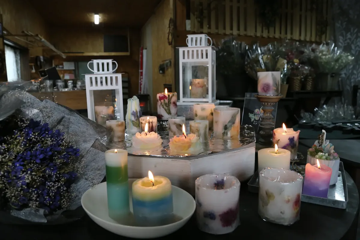 東日本大震災から15年目となった3月11日、岩手県八幡平市でで、子育て中の女性が中心となって活動する「花っ娘(こ)」が運営する「Dry flower shop花っ娘」が、復興への願いを込めて、リンドウなどのドライフラワーを使ったボタニカルキャンドルに火を灯した。