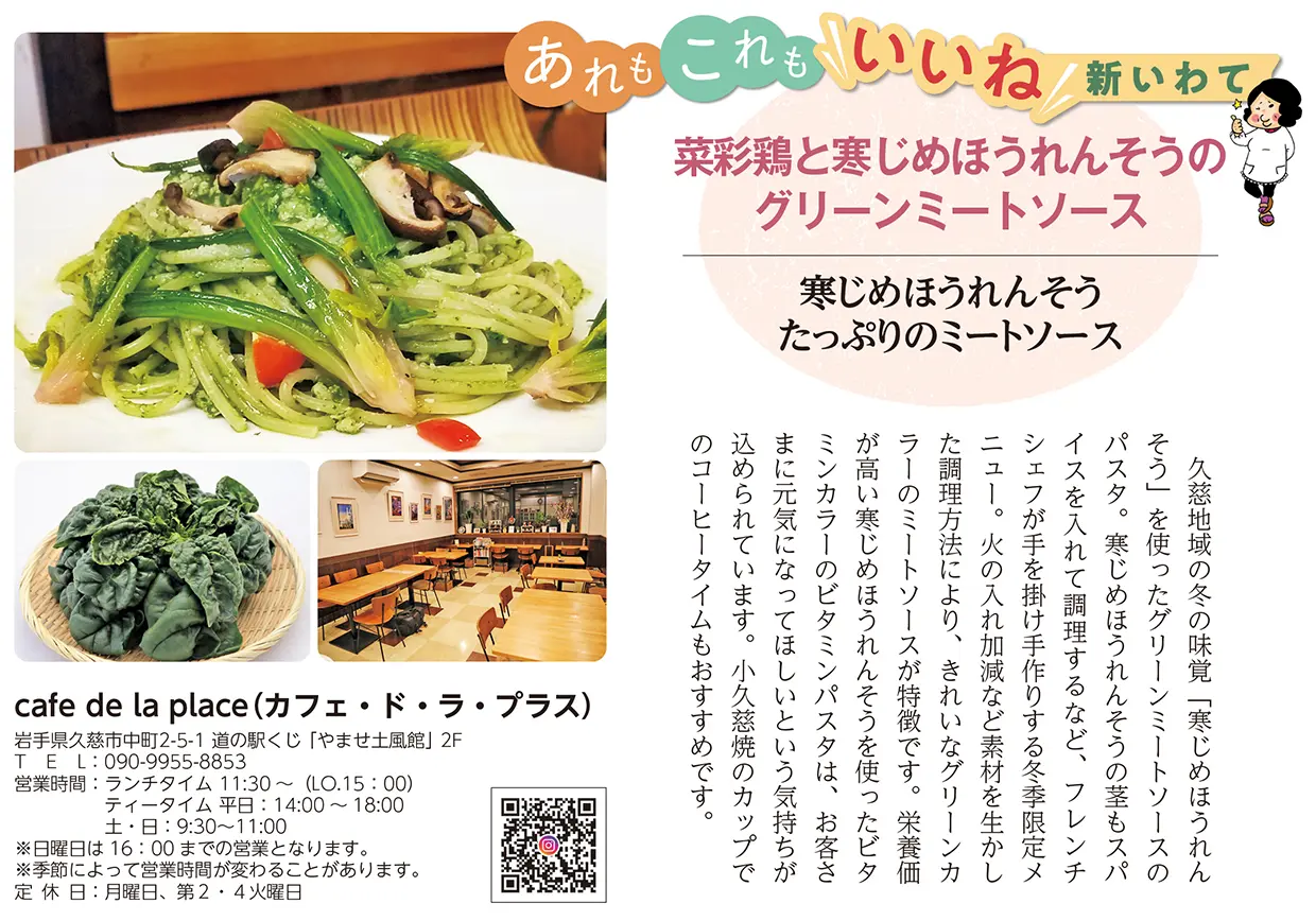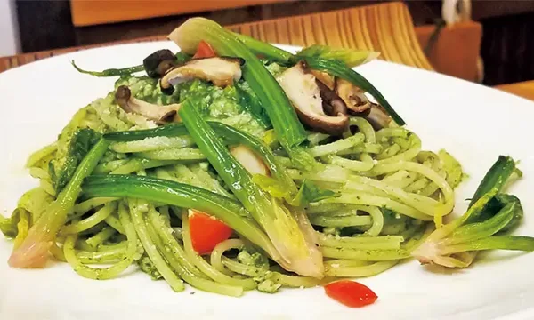 菜彩鶏と寒じめほうれんそうのグリーンミートソース