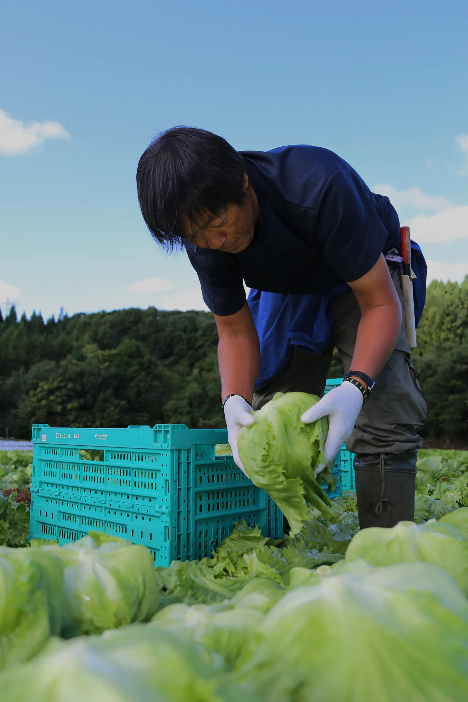 岩手町で、レタス3.9 ha、キャベツ50a、白菜1ha、スイートコーン20aを作付けする武志さん。安全・安心なレタスを消費者に届けるため、令和6年にレタスで第3者認証のグローバルGAPの団体認証を取得する。今朝採りレタスという特別な販売をしてくれる出荷先からの期待に応えることで産地としての責任を果たし、消費者のことを考え生産に汗を流している。