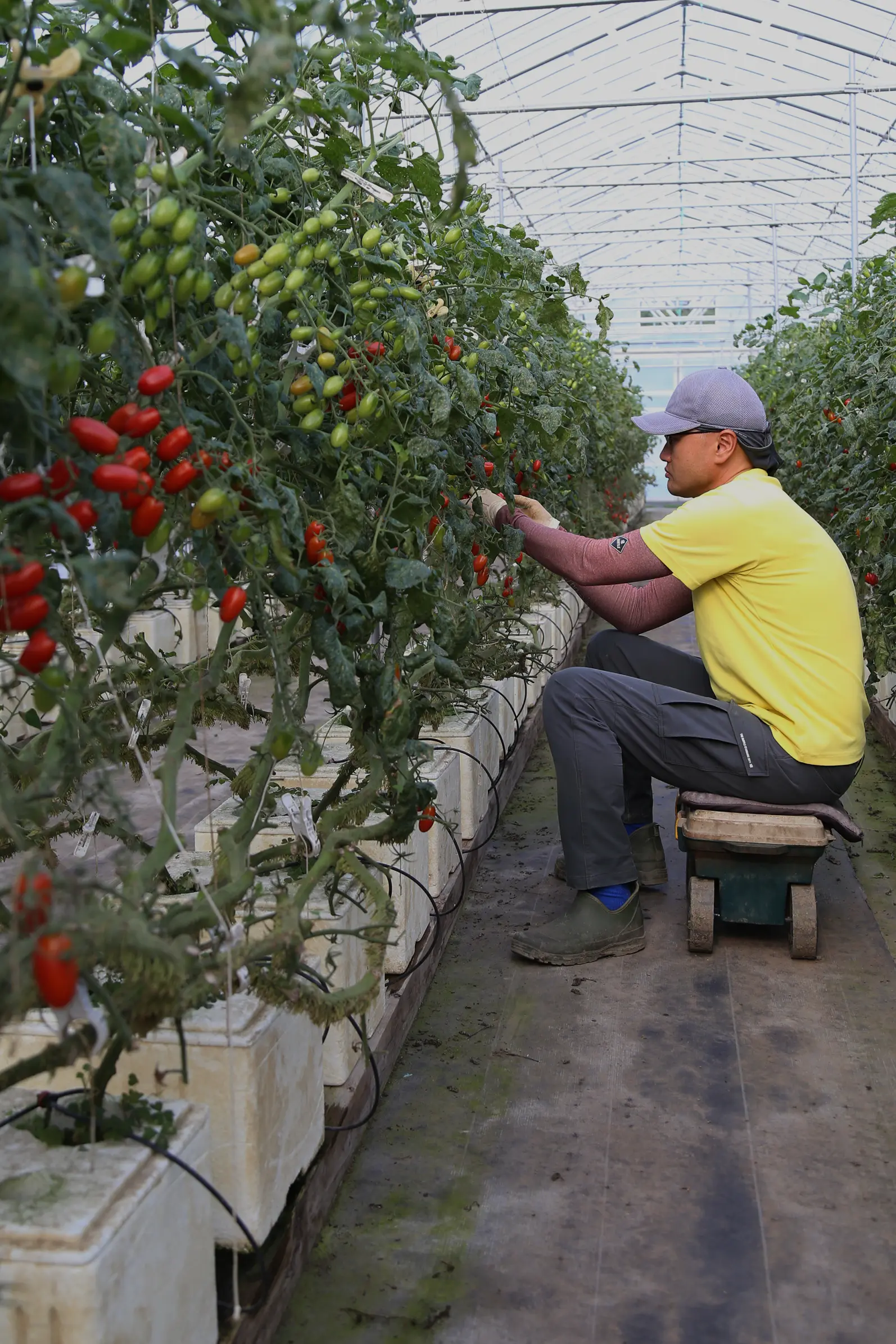 一方で、長期雇用に繋げるために水稲の育苗ハウスで夏場の収入源としてホウレンソウを作付けしていたが、プール育苗のための均平する作業の労力がかかるという課題があった。鹿糠沢さんは「県内での導入は後発であったが、作業効率のため全農式トロ箱養液栽培システム「うぃずOne」を導入した」と話す。平成30年に1棟に導入しミニトマトを作付けした。令和4年には5棟まで増やし、令和5年には全農オリジナル品種のミニトマト「アンジェレ」に品種を切り替えた。アンジェレは、へたなしのバラ出荷で収穫調整作業の効率化にもつながっている。また、事前に価格が決まるため計画を立てやすいメリットもある。